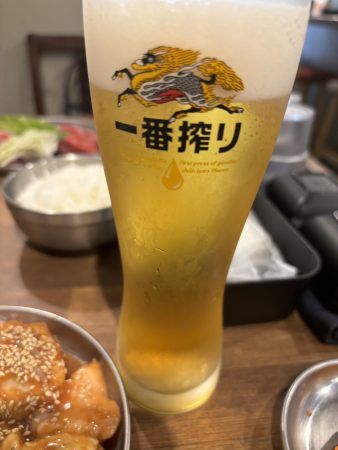 ランチビールで生ビール(440円)と一緒に食べると最高な休日だ~と心にしみました!(笑) ホルモン×ビールは最強な組み合わせです。