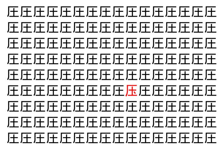 【脳トレ】「圧」の中に紛れて1つ違う文字がある!?あなたは何秒で探し出せるかな??【違う文字を探せ!】