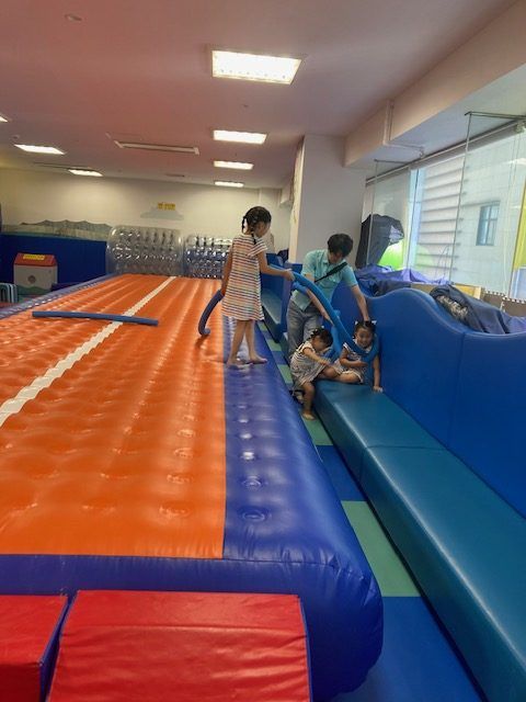 大きなトランポリンでかけっこしたりでんぐり返ししたり♪楽しい!!