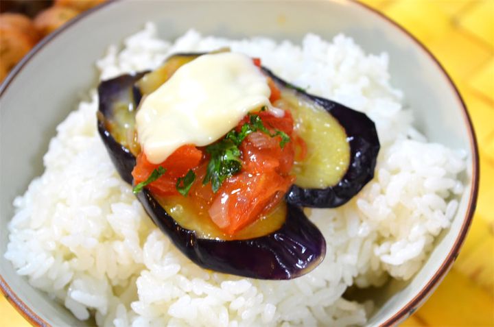 ご飯と一緒に食べれば、口の中はイタリア~ン!オリーブオイルのコクと、なすとトマト×チーズの組み合わせの威力ったら、もうっ♡
