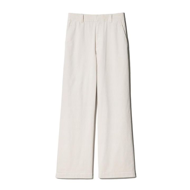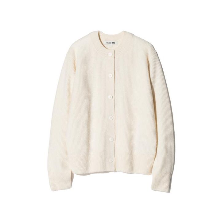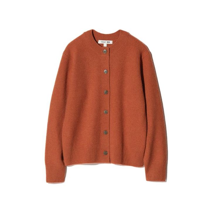 ラムクルーネックカーディガン¥3,990ラムクルーネックセーター¥3,990コーデュロイワイドパンツ¥4,990※すべて一部店舗のみ(すべてユニクロ アンド コントワー・デ・コトニエ/ユニクロ)
