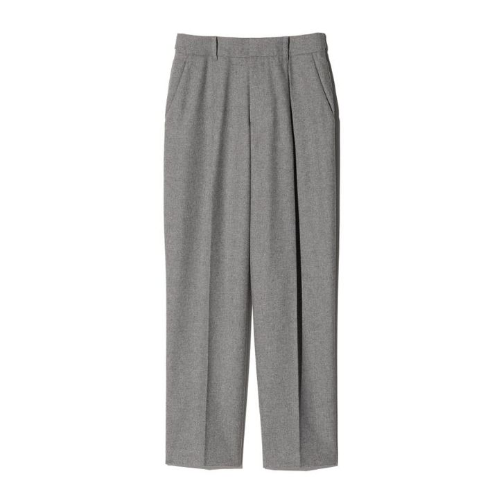 コートと併せて見逃したくないのはパンツ。今回登場したのはツイード素材のタック入りテーパードパンツ。腰回りをボタンで調整することもできるので、インナーに厚手のものを着たい冬本番も活躍しそう。