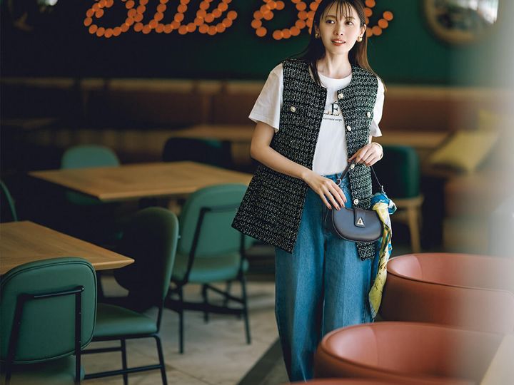 夏服のマンネリ回避にも秋らしいツイードジレが効果的♡