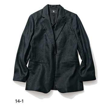ほんのり微光沢をともなったリネン素材。ジャケットはほどよくお尻が隠れるオーバーサイズ。パンツは太すぎず細すぎない、キレイに穿けてスタイルカバーにも効果的なシルエット。ウールよりも軽やかな風合いだから、寒さの厳しい日以外は手にとれる着やすさがうれしい。