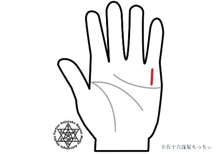 小指の下にまっすぐ伸びる短い縦線がある人は、現在取り組んでいる仕事において成果を上げることができる人です。仕事運も金運も良好で、人生が良くなる傾向を示しています。特にこの線が太くはっきり現れているならば、年内の残りの期間に大きなラッキーが起こる可能性が高まっているといえます。
