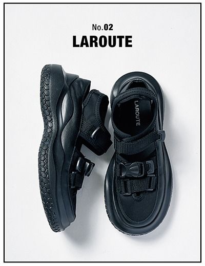歩くのも楽しくなるような、反発力に優れたソール。合わせやすいオール黒のボディと、ツヤをまとったレザーのような上質な素材感。黒ベルトシューズ/ラルート(アバハウスインターナショナル オンラインストア)