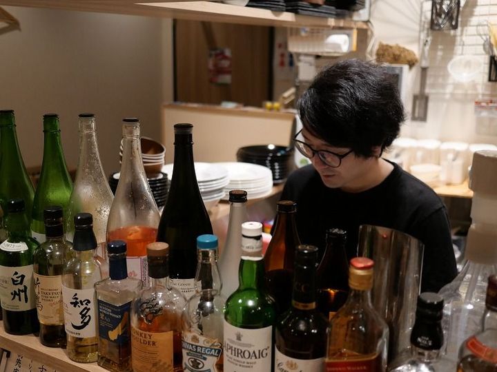 カウンター越しにお仕事中の加藤さんをパシャリ。カウンターもあるので、ソロ飲みにもイイ感じ♪