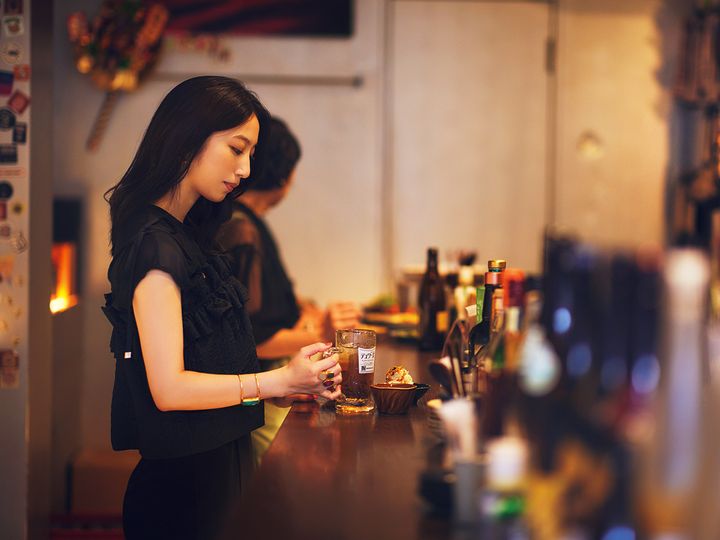 ふと、カウンター中央の黒いワンピース姿の女性が目に入る。姿勢の綺麗なひとり呑み。