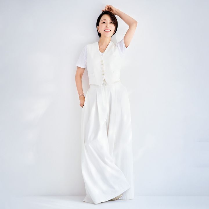 ジレ¥66,000 パンツ¥63,800(ともにサポート サーフェス)イヤリング¥154,000(キノシタパール)ネックレス¥880,000 指輪¥880,000(ともにケイテン)バングル¥1,210,000(アレッサンドラ ドナ/ラパール ドリエント)インナー、靴/ともにスタイリスト私物