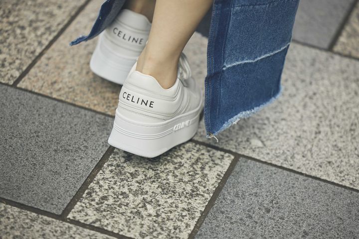スリットからのぞくスニーカーは厚底のCELINE一択。脚もキレイに見せてくれるしカジュアル度が加算されてヘルシーに見せてくれます。