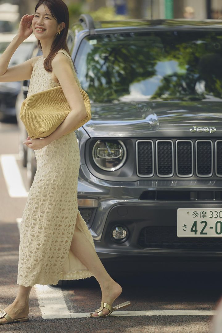 デコルテ周りが寂しくなってきたので、顔まわりを華やかにしてくれるデザイン性のあるHIKEのタンクトップに、ヌメロの深めスリットの入ったデニムスカートを合わせてヘルシーなコーデを意識しました。カジュアルにもキレイめにも昇華してくれる旬デザインのスカートは、オシャレ好きな友達から褒められ率が高いアイテム。いくつになっても着たいものを着る、挑戦する気持ちを持ち続けていたいです。