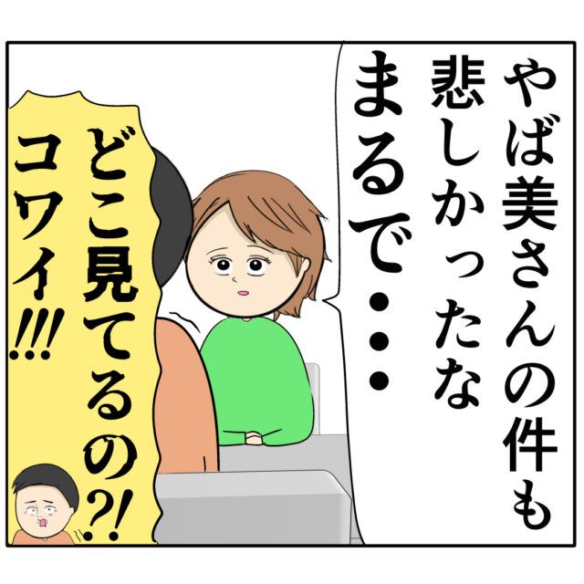 すみれさんの話は過去に遡り「やば美さんの件も悲しかったな。まるで・・」遠い目をしながら話すすみれさんを見て「どこ見てるの!?怖い!!」と良し男さんは思わず叫びました。