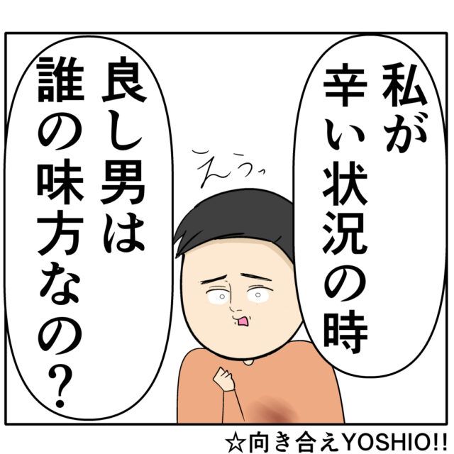 「私が辛い状況の時、良し男は誰の味方なの?」完全に逃げ場を失った良し男さん、何と答えるのが正解か必死に頭をひねっていたことでしょう。