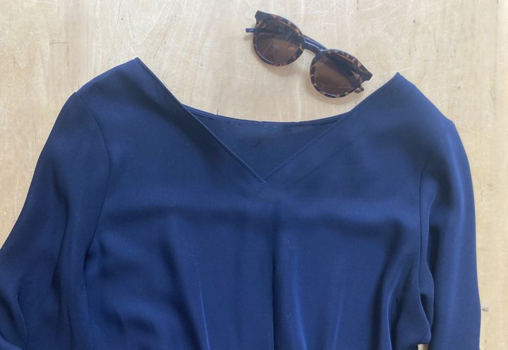 保護者会用ワンピースにレンズが黒いサングラスを合わせるとこういうイメージだったのが、