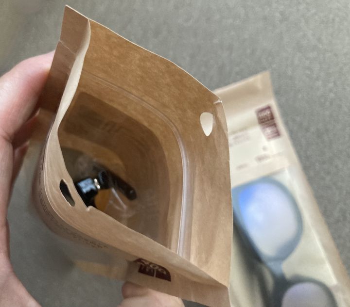 環境に配慮された紙パック入り。サングラスが紙パックに入って売られているって画期的ですが、何ら問題なしですよね。
