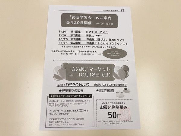 HPだといきなり葬儀の話になってビビりますが、さいあいマーケットはまったく怖くないです。 まずはお気軽にお運びください。