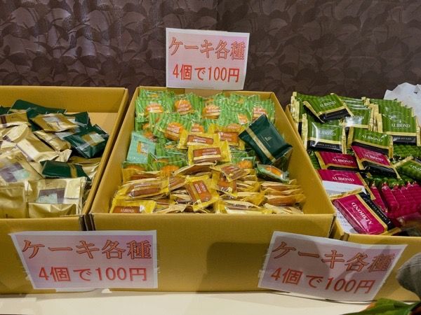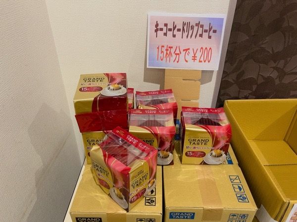 ヨコハマグランドインターコンチネンタルホテルのカレーや、缶詰、梅干し、佃煮、鶏五目ごはんなどは100円! 毎回好評のお茶詰め放題(1缶500円)やドリップコーヒーもありました。