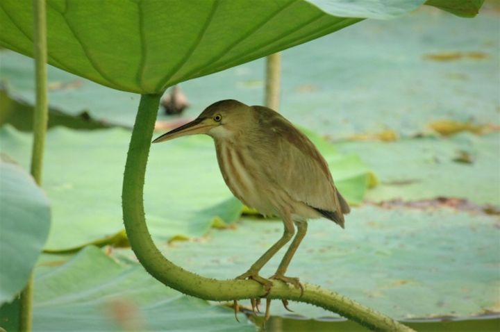 「葦五位(よしごい)」はサギの仲間で、日本には夏季に繁殖のため飛来する夏鳥です。 湿原や湖、池沼、水田などに生息し、ヨシ原に生息することとゴイサギという鳥に似ているのが「葦五位」という名前の由来になったとされています。 褐色の縦縞が体に入っているのが特徴で、オスは1本・メスは5本入っています。