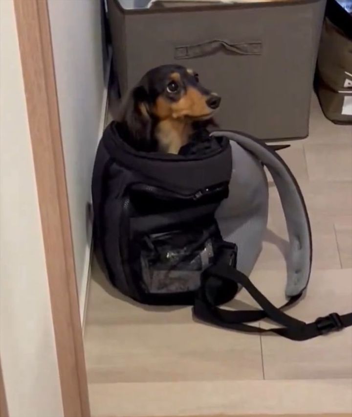 飼い主さんによると、お出かけバッグを床に出しっぱなしにしていると、このように中に入ってスタンバイしていることがあるそうです。 大好きなパパさんママさんの会話をしっかり聞いているんですね~。
