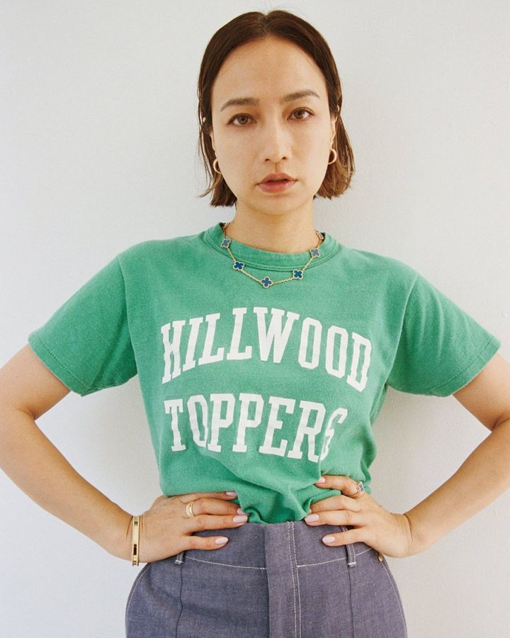 3. 【ヴァン クリーフ&アーペルのジュエリー】ヴィンテージのグリーンTにカラーストーンのヌケ感をオン!