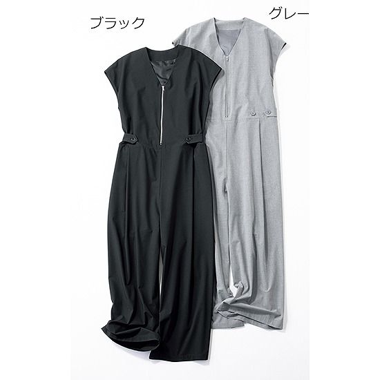 一枚でサマになるオールインワンも、秋素材&旬のジャンプスーツ調デザインに更新すれば簡単にフレッシュな着こなしに。まだ暑い初秋、一枚で着ても二の腕が気にならないフレンチスリーブ、デコルテをシュッと見せるVネックと大人のカラダを美しく見せます。