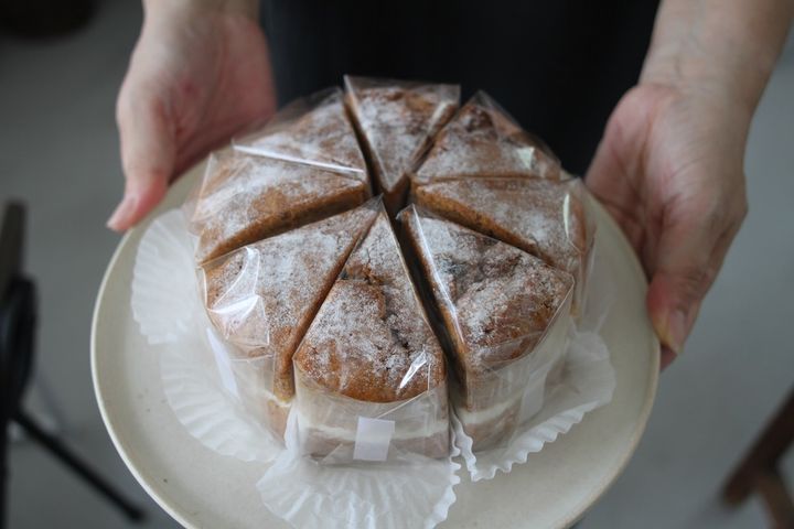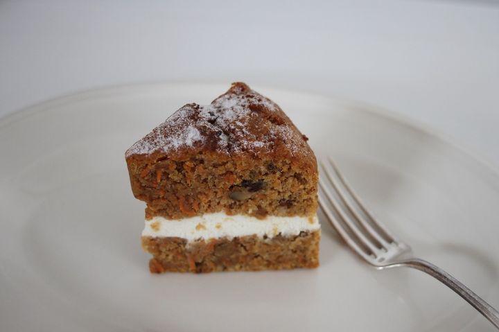 こちらの「キャロットケーキ」は、店主のお母さまの味を再現。ニンジン入りの生地には、レーズンやくるみ、イチジクもたっぷり入っています。シナモン・ナツメグ・クローブを加えて、ほんのりスパイシーな味わいに。間に挟んでいるクリームチーズバタークリームがいいアクセントに♪