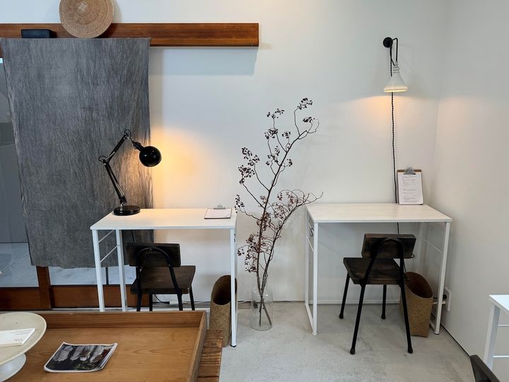 和の雰囲気の外観とは対照的に、店内は洋風でシンプルな内装が印象的です。白を基調とした余白の多い空間は、ひとり時間を満喫できそうな居心地のよさが感じられます。
