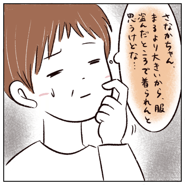 そして「さなかちゃん、まるより大きいから、服盗んだところで着られんと思うけどな・・」と考えていました。