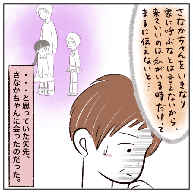 「さなかちゃんをいきなり『家に呼ぶな』とは言えないから、来ていいのは私がいる時だけってまるに伝えないと・・」そう考えていた矢先、「私もみかん狩りに行く」とやって来たさなかちゃんに会ったのでした。
