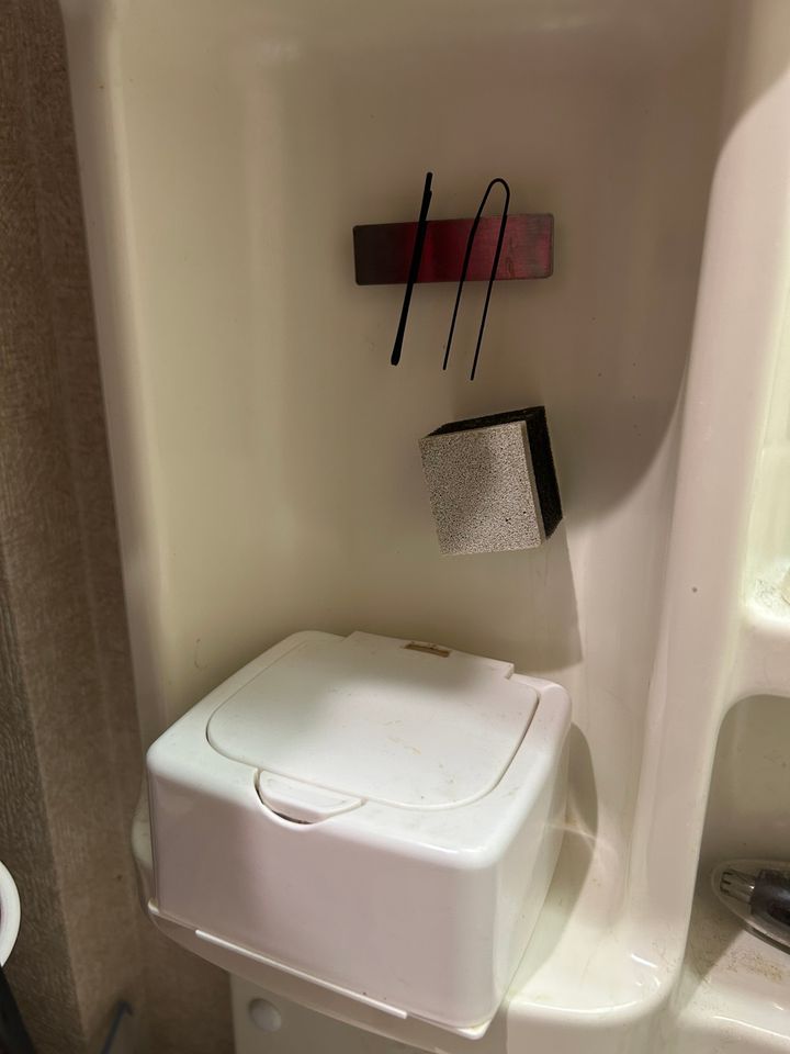 私はちょっとした掃除のためのミニスポンジも浮かせています(笑)