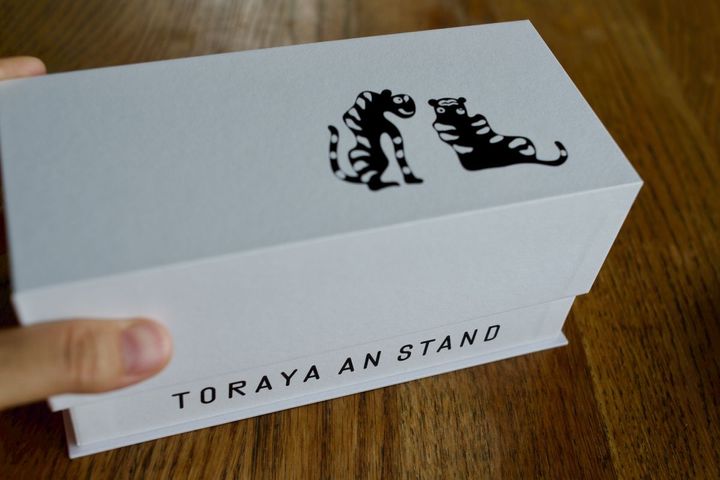 箱に描かれたチャーミングなトラは、店内の壁画にも描かれた「トラヤあんスタンド」を象徴するキャラクター。