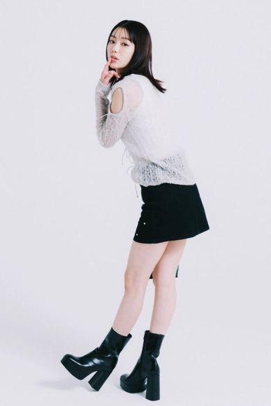 モノトーン配色のミニ丈コーデ。透け感やカットデザインで色っぽく仕上げて♡ 厚底ブーツでスタイルアップも叶えて!