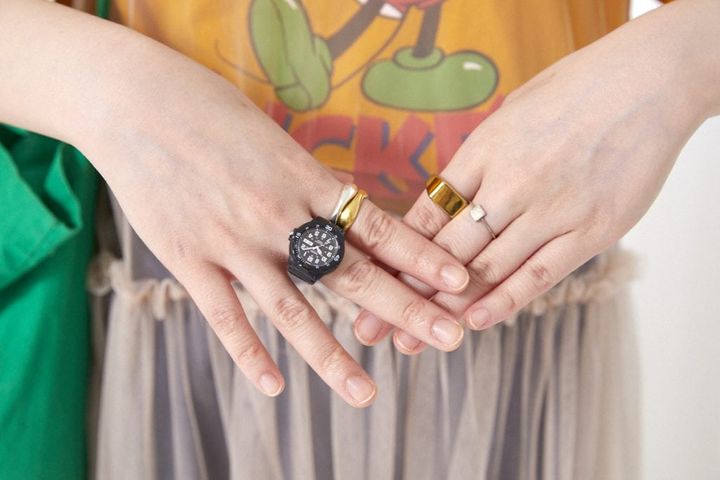 時計風の指輪は400円のガチャガチャでゲット。「軽いのでつけやすいです」