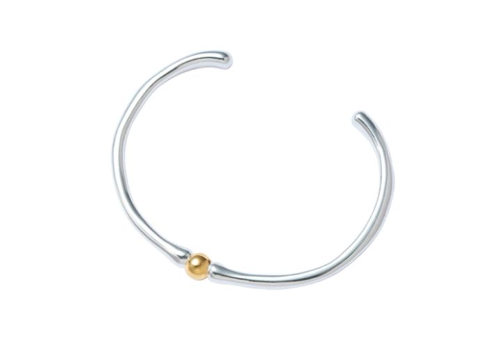 シンプルなアームの中央に、小さなポイントをトッピング。バングル(SV925×K18GP)¥24,200/TEN.