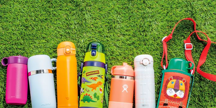 [右から]絵本作家、立本倫子さんが描く「コロボックル」とのコラボレーションシリーズ。真空断熱ボトルMBR-C06G ライオン〈RN〉オープン価格(タイガー魔法瓶) 凹凸がある珍しいデザインで女の子に大人気! 交換部品も豊富。真空断熱ケータイマグJNR-400(サーモス) アメリカ発ブランド「Hydro Flask®」の子ども仕様。カラバリやアクセサリーが豊富。12oz Wide Mouth KIDS(アルコインターナショナル) 人気のワンプッシュオープンの直のみタイプ。立体プリントがキュート! 3Dロック付きワンプッシュダイレクトボトル480㎖(スケーター) 〝せん〟と〝パッキン〟がひとつになった「シームレスせん」タイプで洗いやすいと人気。ステンレスマグSM-WA48(象印マホービン) ポップな色味とデザインが特徴のmosh!シリーズのカップ付き。mosh! コップ付きボトルCAFE&WORK(ドウシシャ) デザインと機能性を兼ね備えた日本ブランド。ストロータイプは子どもにも大人にも人気。プレイタンブラー300㎖(KINTO)
