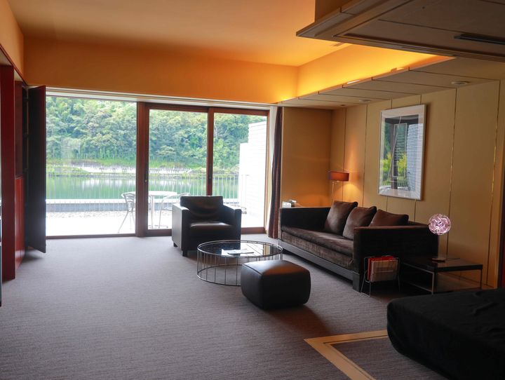 リバーリトリート雅樂倶を訪れる際には、客室ごとに異なる間取りやデザインにも注目していただきたいです。今回宿泊したのは、新館にあるラグジュアリースイート温泉付の「113号室 幻樂(げんがく)」そのエレガントな内装と贅沢な広さで、日常の喧騒を忘れさせ、旅の疲れをしっかりと癒してくれます