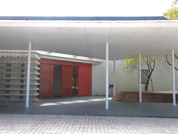 113号室 幻樂の宿泊者だけが楽しめる、中庭のアート『時に佇む』は畠山 耕治氏の作品です。富山の自然と一体となったアート作品は、客室内からも眺められます。