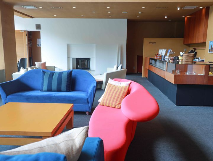 施設内を進むと、次々に現れるおしゃれな空間に心を奪われ、大人も思わず夢中になってしまうほど。色鮮やかなソファが印象的な1階のカフェでは、ケーキやドリンクを楽しむことができ、まるで美術館の中でカフェタイムをするようなひとときをすごせました。