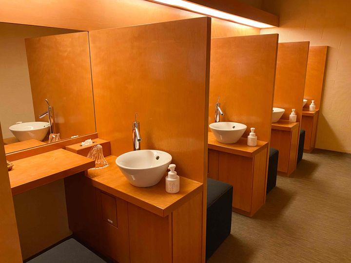 パウダールームは、半個室のようになっていて、スキンケアやヘアケアを人目を気にせずに自分のペースで仕上げることができました。