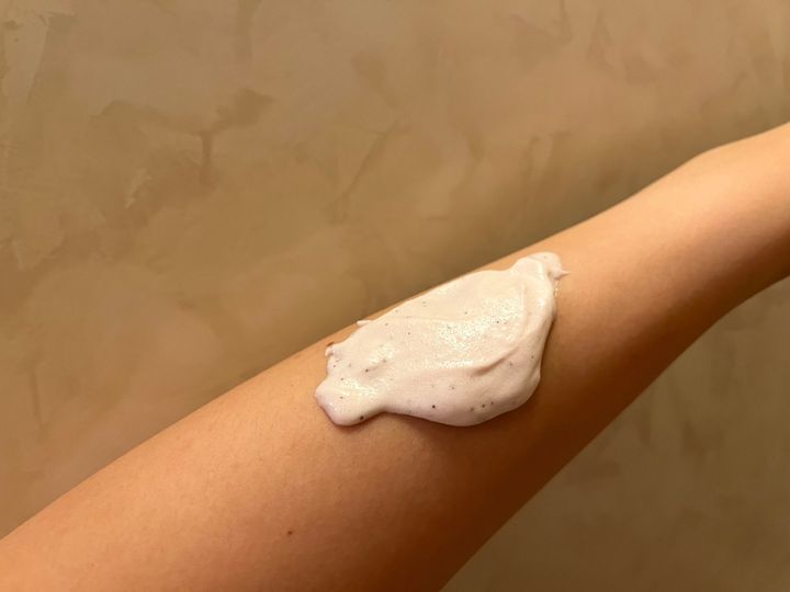 かなりクリーミーなテクスチャーのスクラブなので、肌に優しくケアできるのがポイントだと思いました👀