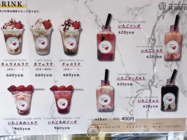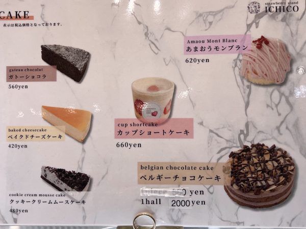 いちご飴だけではありません。マークイズ福岡ももち店ではケーキやドリンクもあります。