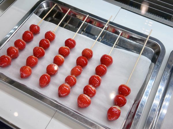 飴は着色料不使用で、国産のいちごも冷凍せずに新鮮なものを使用。材料だけでなく薄くコーティングすることにもこだわり、薄皮の飴とフレッシュないちごの相性が抜群ないちご飴ができたそうです。