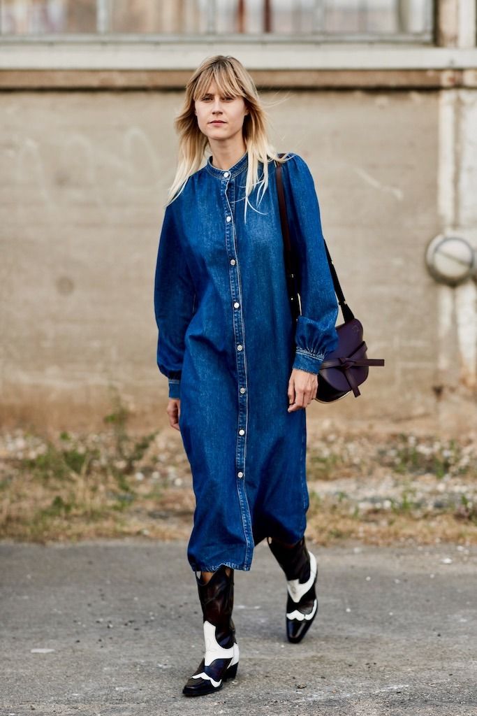 オランダ出身の人気インフルエンサー、リンダ・トールは、使い勝手のよいデニムワンピをウエスタンブーツでブラッシュアップ。遊び心を感じられるバイカラーのウエスタンブーツは、筒幅が太めなのでマチュアな雰囲気に仕上げてくれそう。さらに、ワンピの裾とブーツの履き口の丈感が揃えることでコーデに重厚感を持たせることに成功。