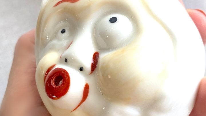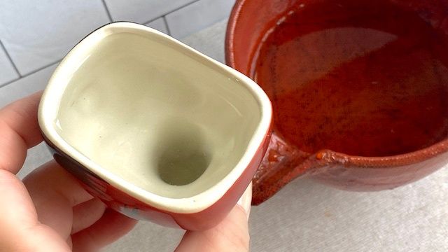 このユーモラスな表情に騙されちゃいけません。穴を塞いで飲むのって、意外と緊張するんです。ひょっとこ杯のように穴を指で押さえておかないとお酒がこぼれてしまう杯を、穴あき盃とも呼ぶそう。