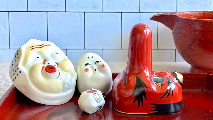 酒豪が多いと言われる高知県ならではの「可杯(べくはい)」。飲み終わるまで置くことができない、楽しくも恐ろしい工夫がされた酒器です。天狗・ひょっとこ・おかめ3種のおちょこと、コマがセットになったべく杯は、お土産としても個性的でおしゃれ! 宴の席の座興として使われるときのルールもご紹介します。