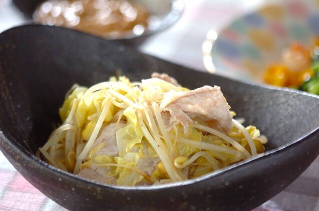 ・ヒラヒラ豚とモヤシ蒸し