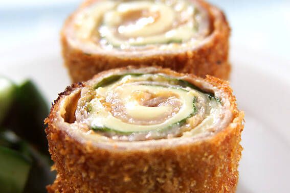 豚肉を広げて大葉と梅肉、チーズを乗せ、くるくる巻いて揚げた一品は、輪切りにし断面を見せることで見た目にも満足できる一品に仕上がります。食材を調味料代わりにした万能おかずは、失敗なく作れます。