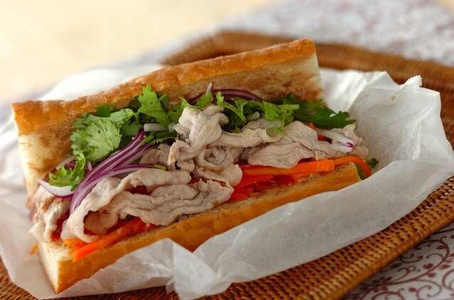 豚のしゃぶしゃぶ肉でベトナムのサンドイッチバインミーが作れます! バゲットは柔らかいソフトタイプを選んでください。お弁当や休日のブランチにもオススメの一品です。