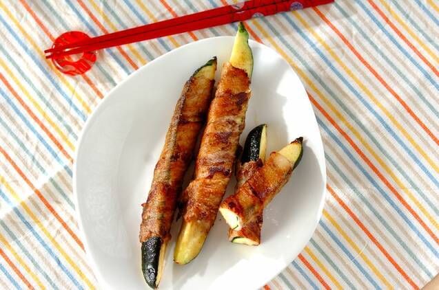 ズッキーニをしゃぶしゃぶ肉で巻いて焼いた一品は、ズッキーニが豚肉のうま味を吸って、とってもジューシー。単品野菜を食べ応えのあるおかずに格上げしてくれる豚しゃぶ肉巻きは、ビールのお供に最適です。