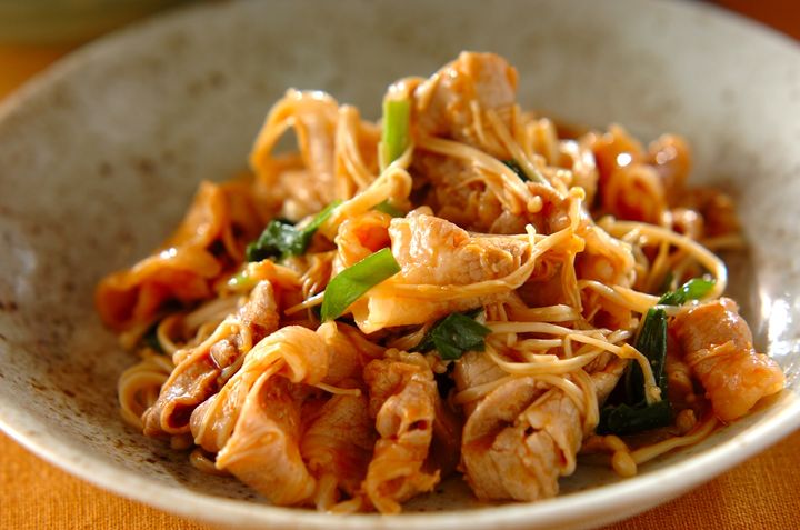 ・豚しゃぶとエノキのコチュジャン和え